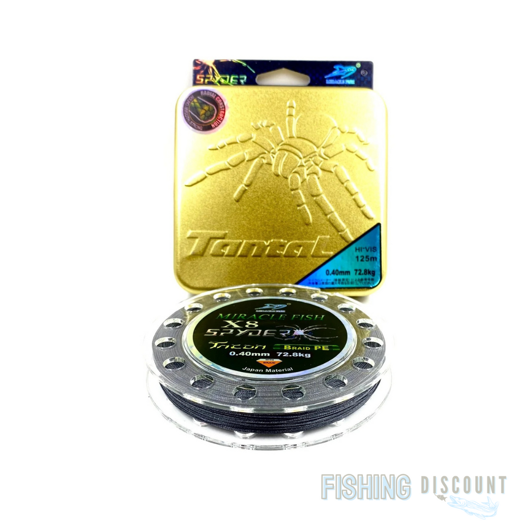 Die SPYDER Power X8 ist eine dicht 8-fach rundgeflochtene Schnur, gefertigt nach japanischer Technologie. Sie überzeugt durch extreme Abriebfestigkeit, lange Haltbarkeit und ermöglicht dank ihrer glatten Oberfläche besonders weite Würfe.